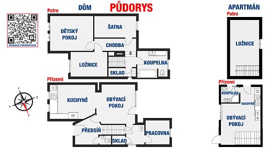 Součástí přízemí je také menší sklad u vstupu do sklepa a pracovna (6 m²) situovaná v klidnější zadní části domu.