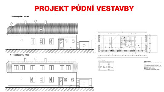 Projekt půdní vestavby je ve fázi podání na stavební úřad. Dle PENB je dům aktuálně veden v energetické třídě F, přičemž projekt počítá se zlepšením na třídu E.
