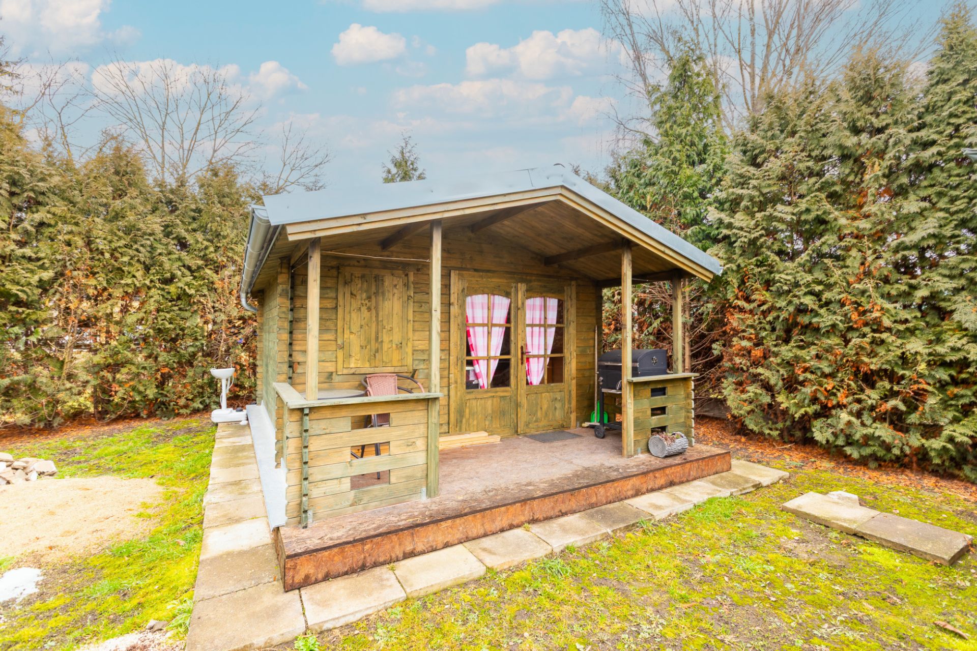 Na pozemku se nachází nová dřevěná chata z podzimu roku 2025, vyrobená truhlářem na míru. Může sloužit jako zázemí při budoucí výstavbě, víkendové útočiště nebo praktický skladovací prostor.