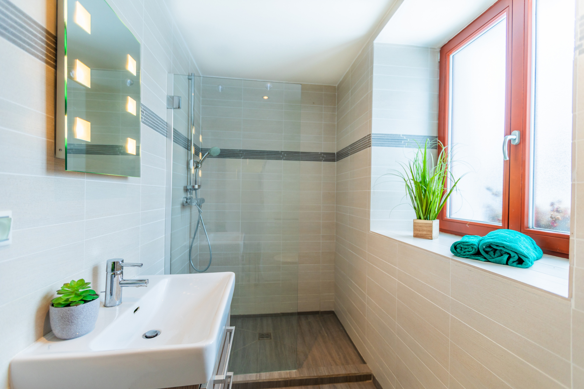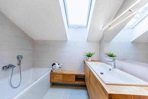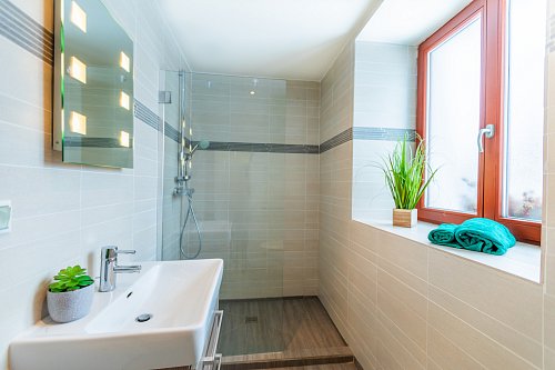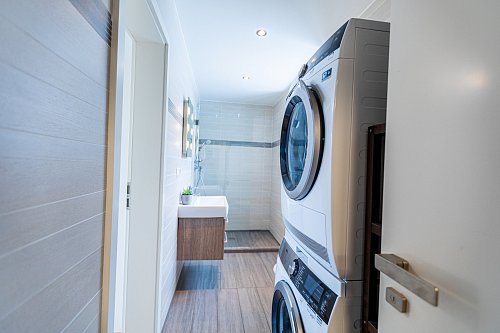 pračka a sušička AEG ve spodní koupelně