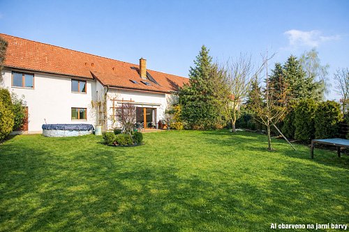 Zahradu navrhoval a dlouhodobě udržuje profesionální zahradník. Výhodou je nejen estetická hodnota, ale také promyšlené rozvržení zeleně, které respektuje orientaci domu i návaznost na obytný prostor. Zahrada působí jako přirozené pokračování interiéru a nabízí dostatek soukromí i prostoru pro relaxaci.