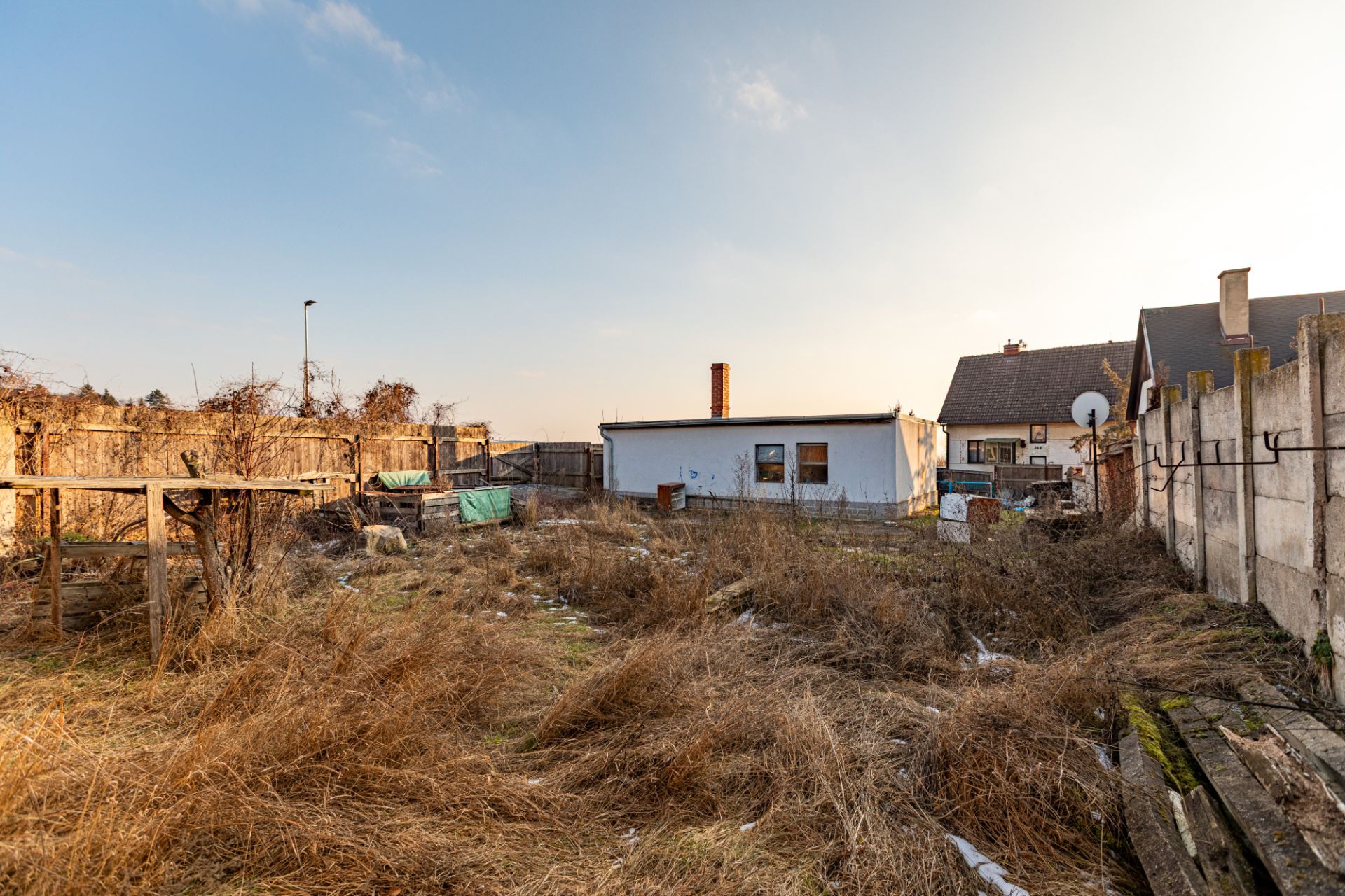 Pozemek je napojen na elektřinu, vodovod, plyn a kanalizaci. V současnosti není využíván, nabízí však široké možnosti budoucího využití – může posloužit jako rekreační parcela nebo jako stavební pozemek pro váš budoucí domov. Připojení k internetu je pomocí optického kabelu. Likvidace panelů na pozemku zajištěna.